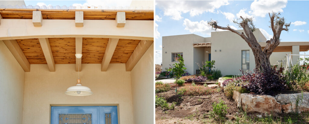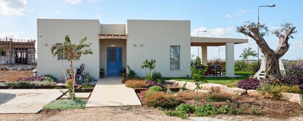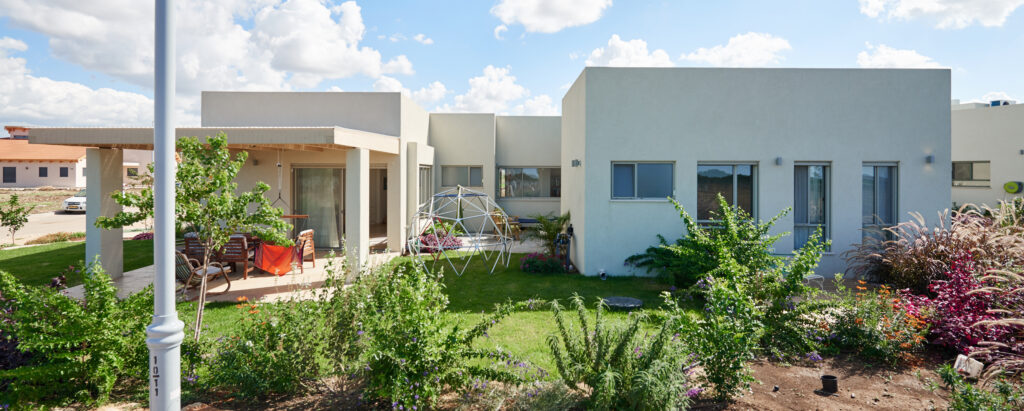 בית קיבוצי הפונה אל השדות, ובו מגוון פינות חוץ – יציאה מהסלון אל השדות המוריקים, וישיבה אינטימית בחצר פנימית, המוצנעת מהרחוב ומהנוף הפתוח. מחדר ההורים יציאה למרפסת רומנטית הצופה גם היא אל השדה, ומפינת המשפחה חיבור אל אזור המשחקים שבחוץ.